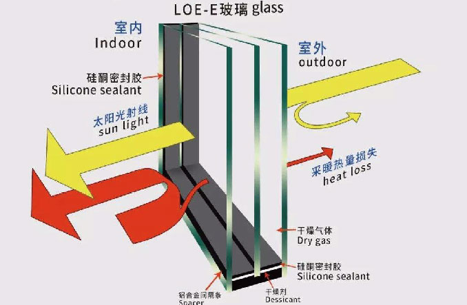 LOW 一 E 玻璃基于玻璃美学和外观特征外,更注重其热量控制、制冷成本和内部阳光投射舒适平衡,其镀膜层具有对可见光高透过及中远红外线高反射镀特性,使其与普通玻璃及传统的建筑用镀膜玻璃相比,具有显著的隔热效果和良好透光性。